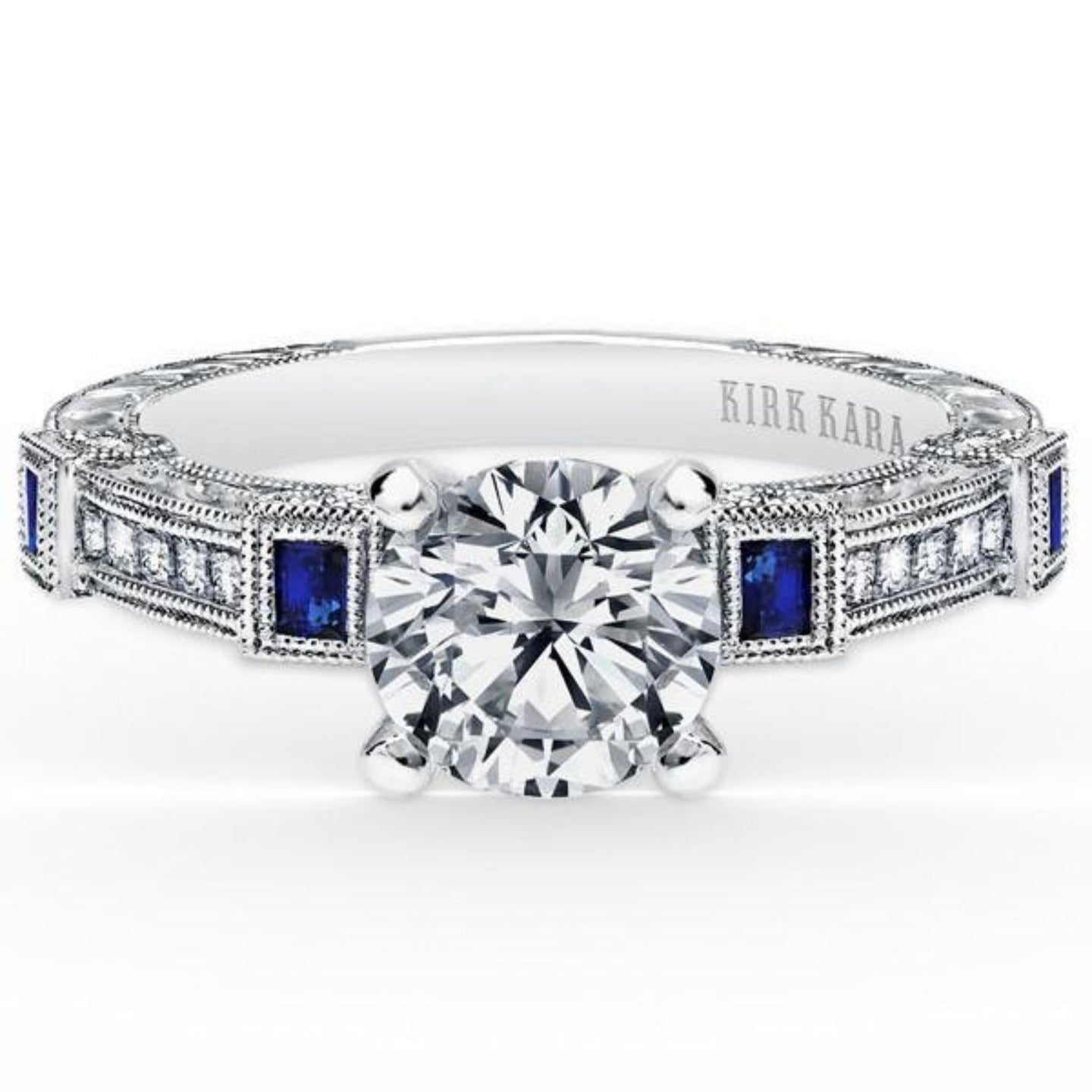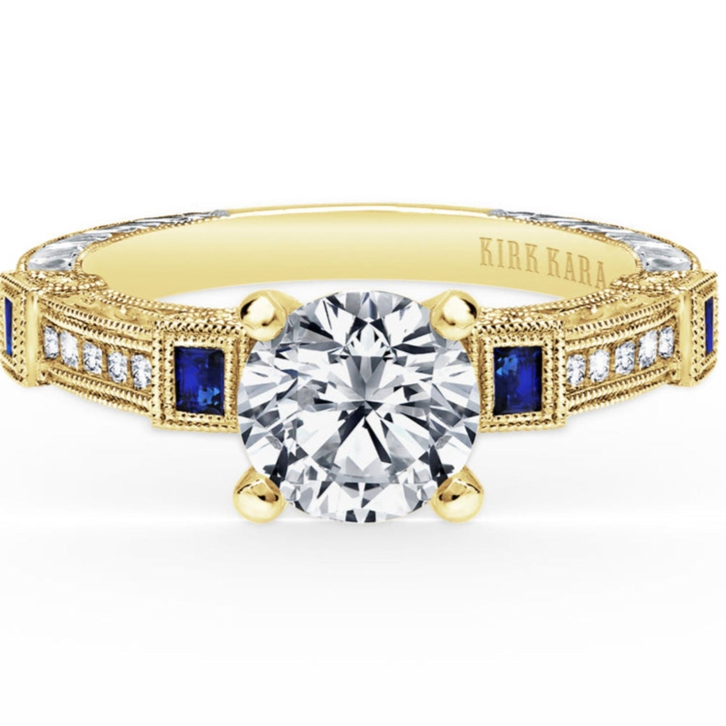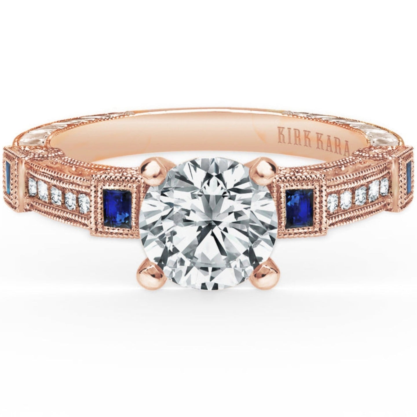 Kirk Kara "Carmella" Blue Sapphire Bezel Set Diamond Engagement Ring