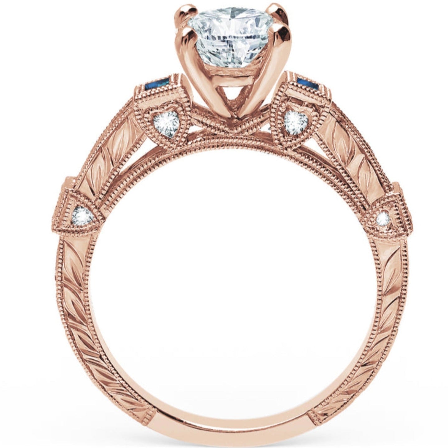 - Ring can be made to accommodate any size or shape diamond, moissanite or gemstone. Shown with a 1.00 carat round cut center stone (approx 6.5mm x 6.5mm)