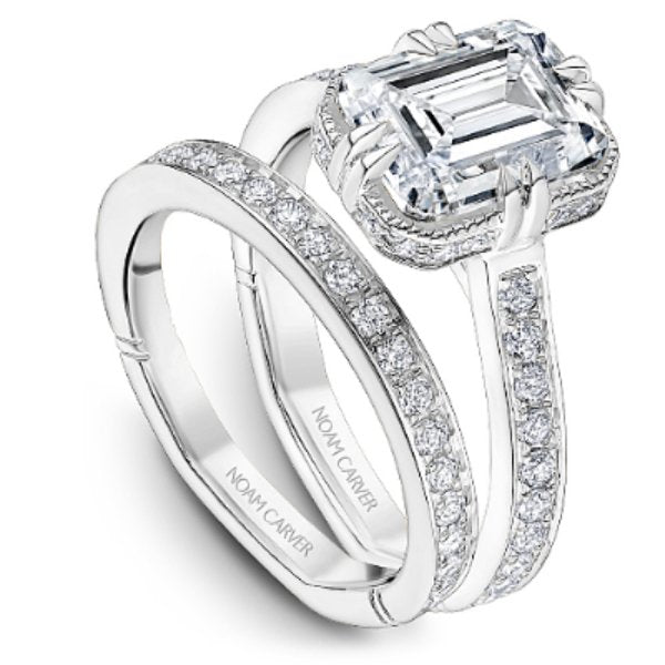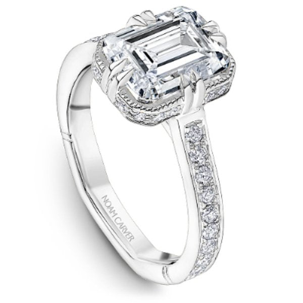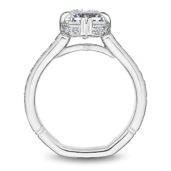 Noam Carver Vintage Style Engagement Ring Featuring Thirty-Six Round Cut Diamonds Weighing 0.38 Carats Total Weight Set in Euro Shank and Profile of Bezel Setting with Milgrain Finish.