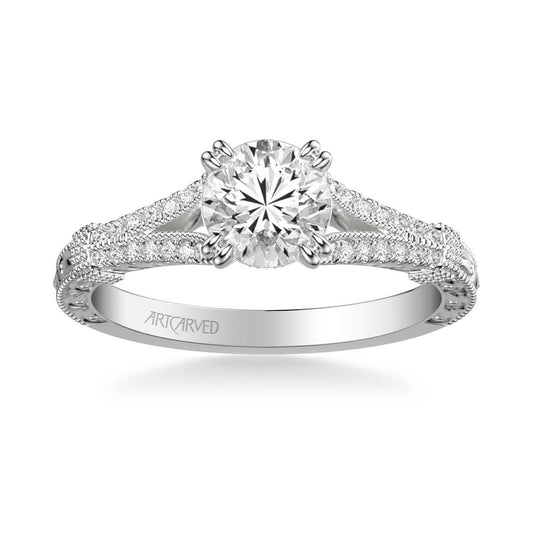 Artcarved "Angelina" Split Shank Diamond Engagement Ring Featuring Engraved Band