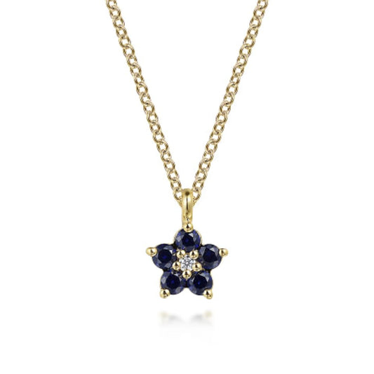 Gabriel & Co. Sapphire & Diamond Floral Themed Pendant Necklace