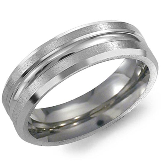 CrownRing Tungsten Machine Cut Center Satin Finish Wedding Band