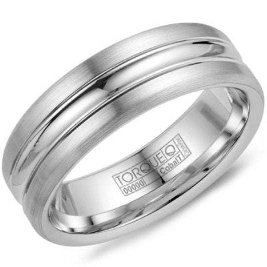 CrownRing 8MM Cobalt Diamond Brush High Polish Center Wedding Band