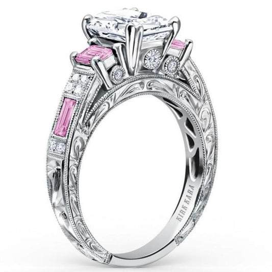 Kirk Kara "Charlotte" Pink Sapphire Emerald Cut Diamond Three Stone Engagement Ring