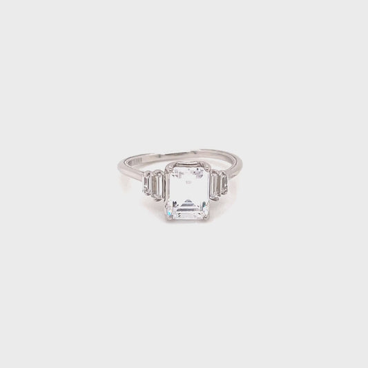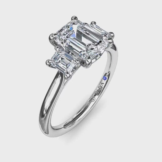 Fana Three Stone Emerald Cut Diamond Engagement Ring