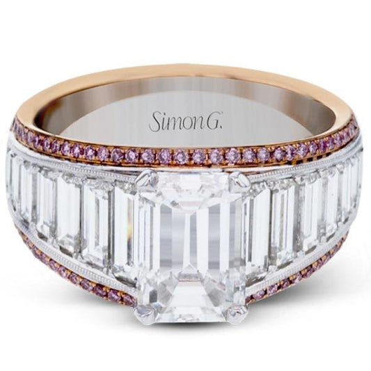 Simon G. 18K White and Rose Gold Large Center Emerald Cut Diamond Baguette Engagement Ring