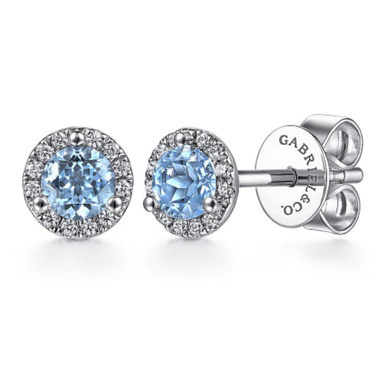 Gabriel & Co. Blue Topaz Diamond Halo Stud Earrings