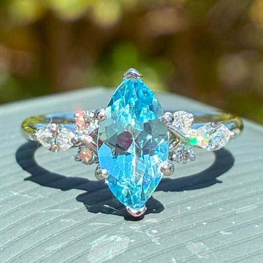 Ben Garelick Auriel Marquise Cut Blue Topaz Lab-Grown Diamond Engagement Ring