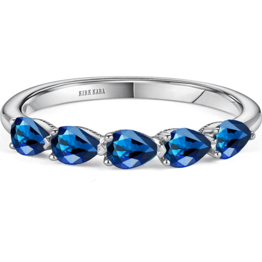 Kirk Kara "Stella" East-West Set Blue Sapphire Pear Cut Wedding Band