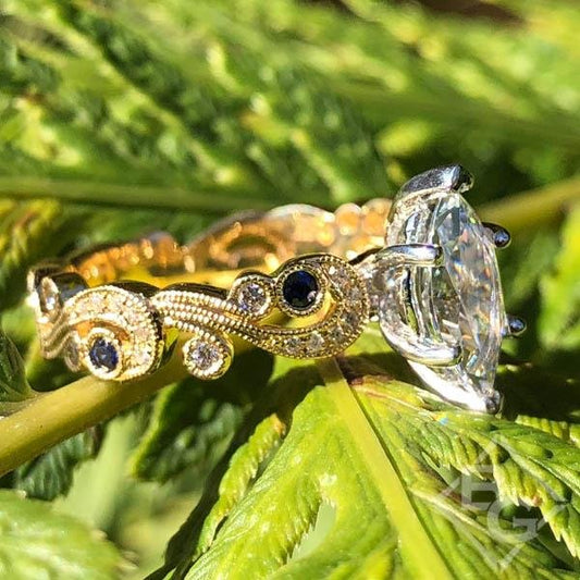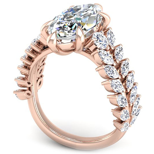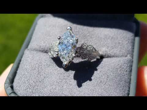 Noam Carver Floral Leaf Vintage Style Large Marquise Center Engagement Ring