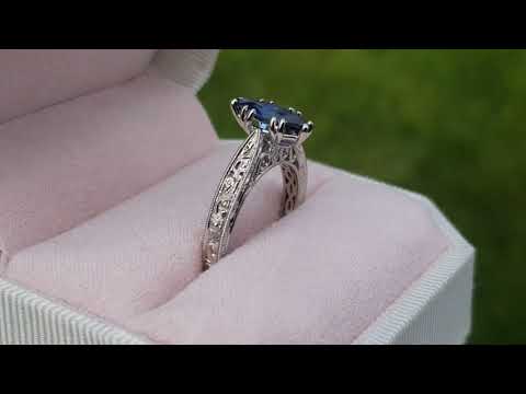 Kirk Kara "Angelique" Scroll Work Blue Sapphire Diamond Engagement Ring