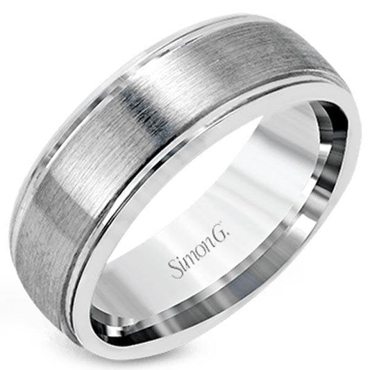 Simon G. White Gold Satin Finished High Polish Edge Wedding Band