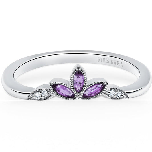 Kirk Kara "Dahlia" Floral Boho Amethyst & Diamond Wedding Band