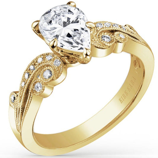 Kirk Kara "Angelique" Scroll Work Pear Cut Diamond Engagement Ring