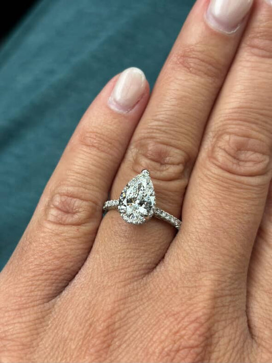 Yes, pear shaped engagement rings are very much in style. Their teardrop silhouette offers a fresh yet timeless alternative to traditional cuts. They’ve gained popularity for their vintage appeal, flattering shape, and the way they elongate the finger. With both lab-grown and natural options available, pear cuts are now set in everything from minimalist solitaires to bold designs with large center diamonds, making them a modern favorite for those seeking something unique yet elegant.