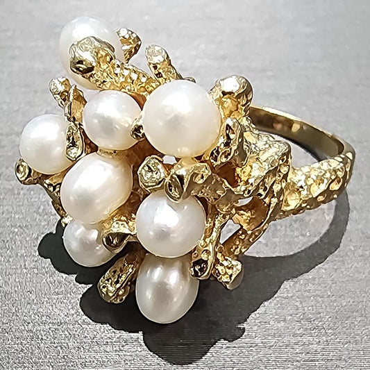 Ben Garelick Estate 14K Yellow Gold Pearl Coral Textured Ring
