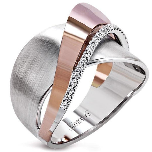 Simon G. 18k White & Rose Two-Tone Gold Diamond "Swish" Ring