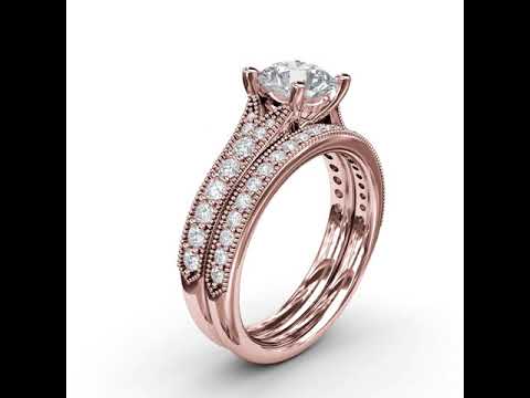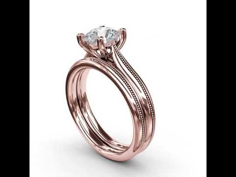 Fana Round Cut Four Prong Rose Gold Milgrain Solitaire Engagement Ring