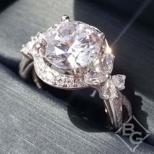 Simon G. Large Round Center Halo Flower Blossom Diamond Engagement Ring