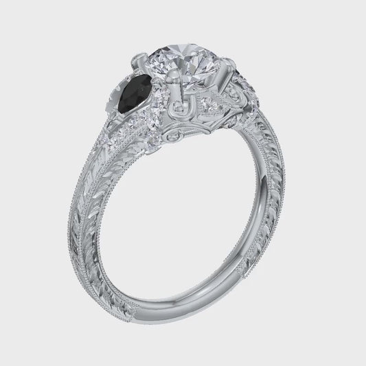 Gabriel & Co. "Chrystie" White & Black Diamond Halo Engagement Ring