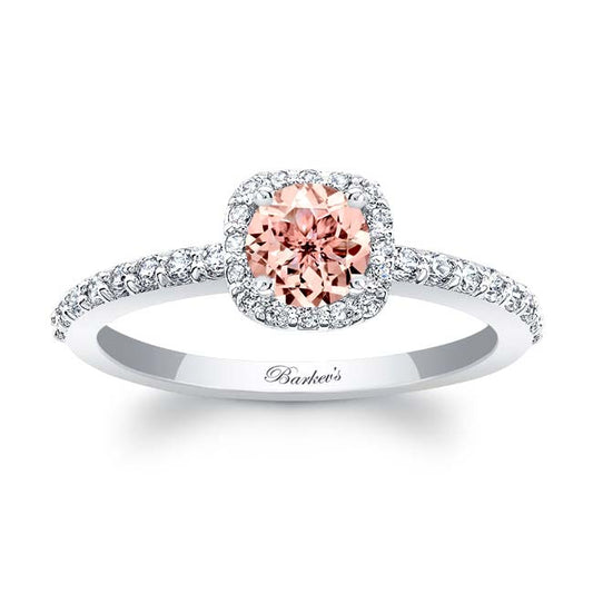 Barkev's Round Cut Morganite Cushion Halo Diamond Engagement Ring