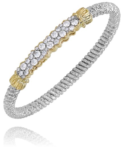 Vahan Sterling Silver & 14K Yellow Gold Diamond Square Pave Bangle Bar Bracelet