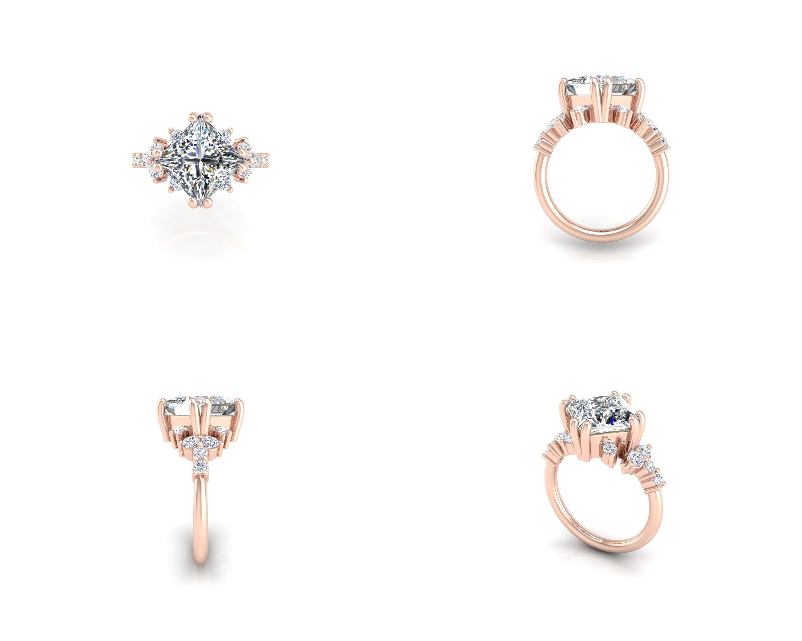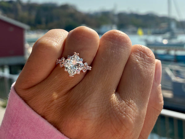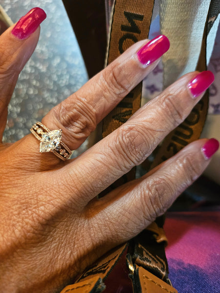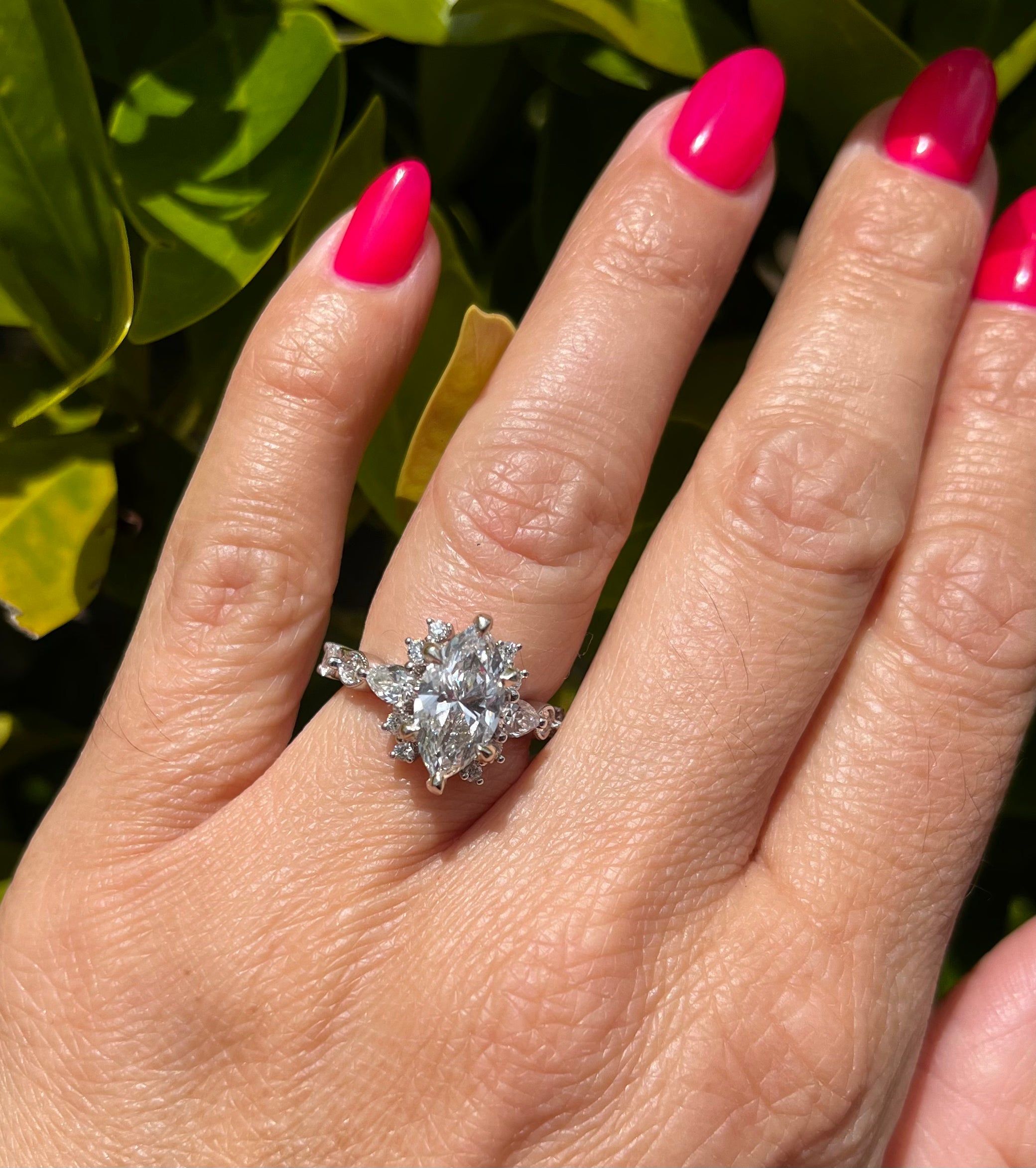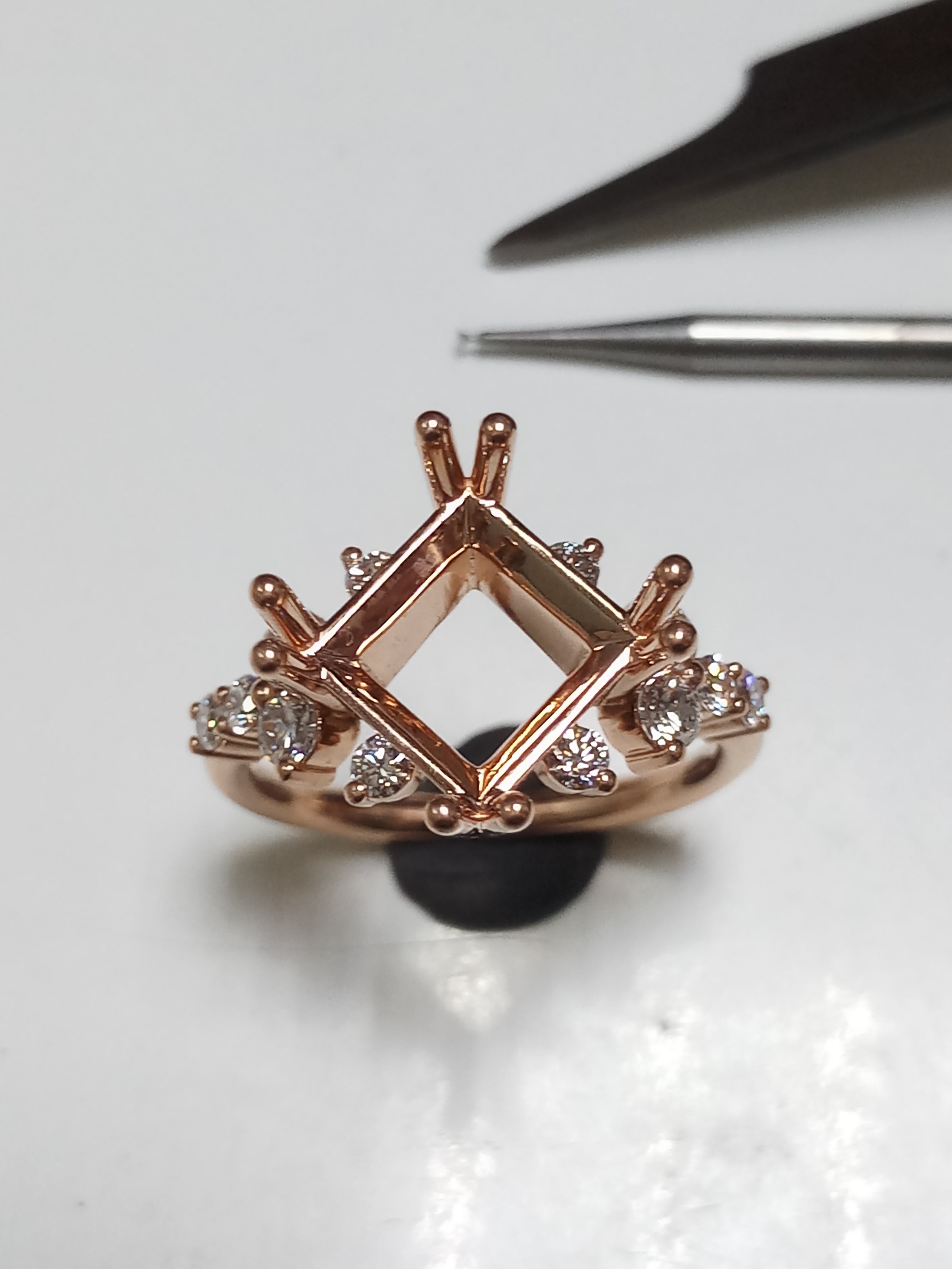 Custom can be as simple as changing the metal, diamond shape, or size in an existing design, or as involved as creating a one-of-a-kind ring from scratch.