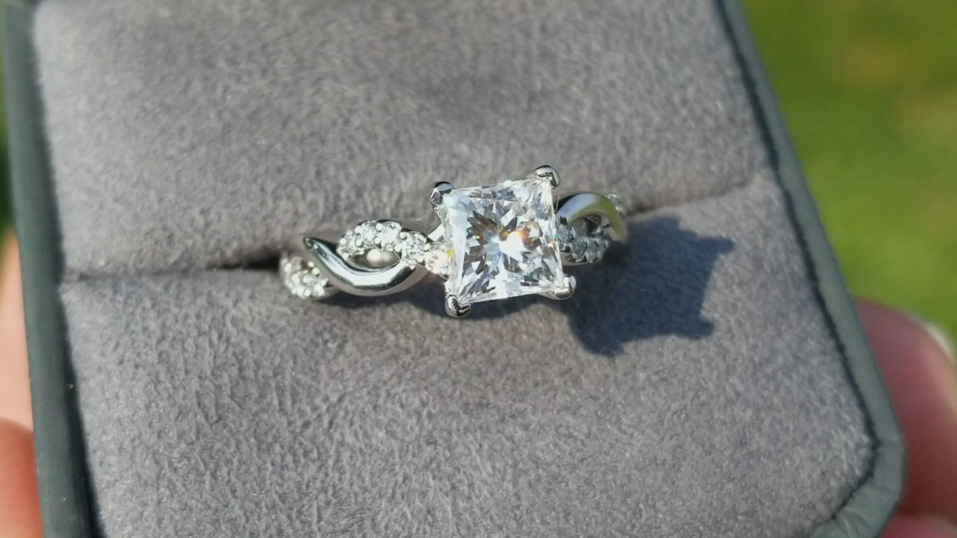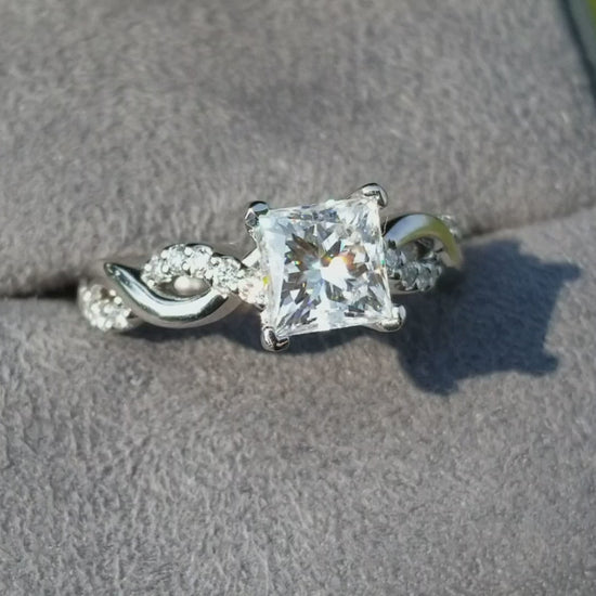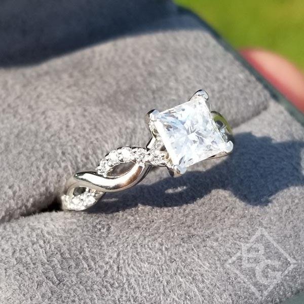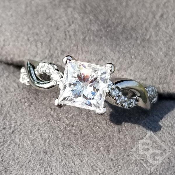 Artcarved "Gabriella" Princess Cut Twist Diamond Engagement Ring Featuring 0.16 Carats Round Cut Side Diamonds