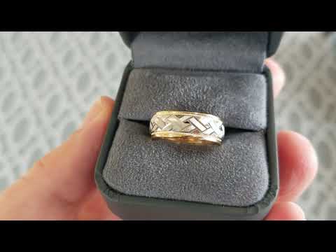 Artcarved "Intrigue" Crosshatch Comfort Fit 7mm Wedding Band with Rolled Edges and a Milgrain Finish