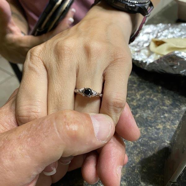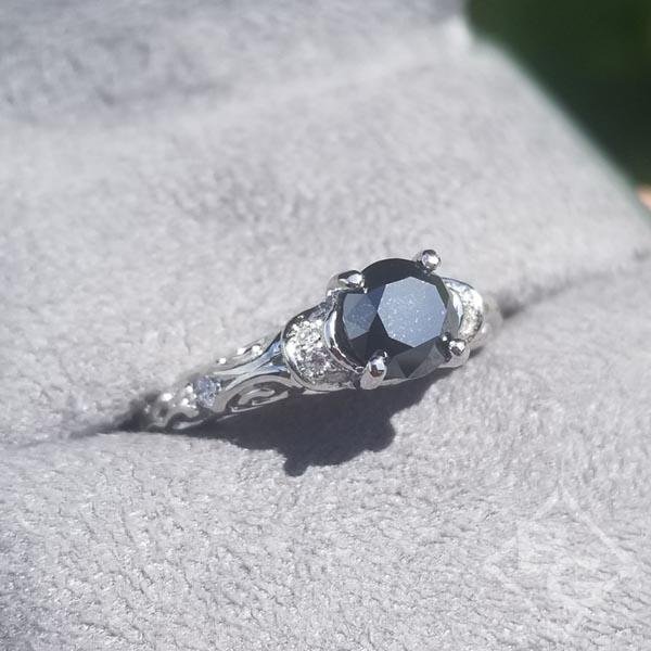 - Ring can be made to accommodate any size or shape black diamond, white diamond, Moissanite or gemstone. Shown with a 0.75 carat round cut black diamond (approx 5.5-6mm - sold seperately)