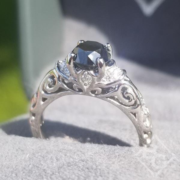 Artcarved "Peyton" 0.75 Carat Round Cut Black Diamond Engagement Ring (sold seperately) Featuring Side Diamonds and High Polish Finished Floral Carving Detail Highlighted with Round Cut White Diamonds at a Total Carat Weight of 0.12 Carats
