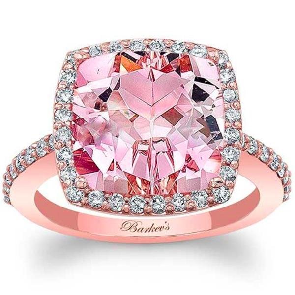Barkev's Cushion Cut Morganite Halo Diamond Engagement Ring Featuring Approximately 0.55 Carats Total Weight Round Cut Diamonds Surrounding a 5 (11MM) Carat Center Cushion Cut Morganite (Included)