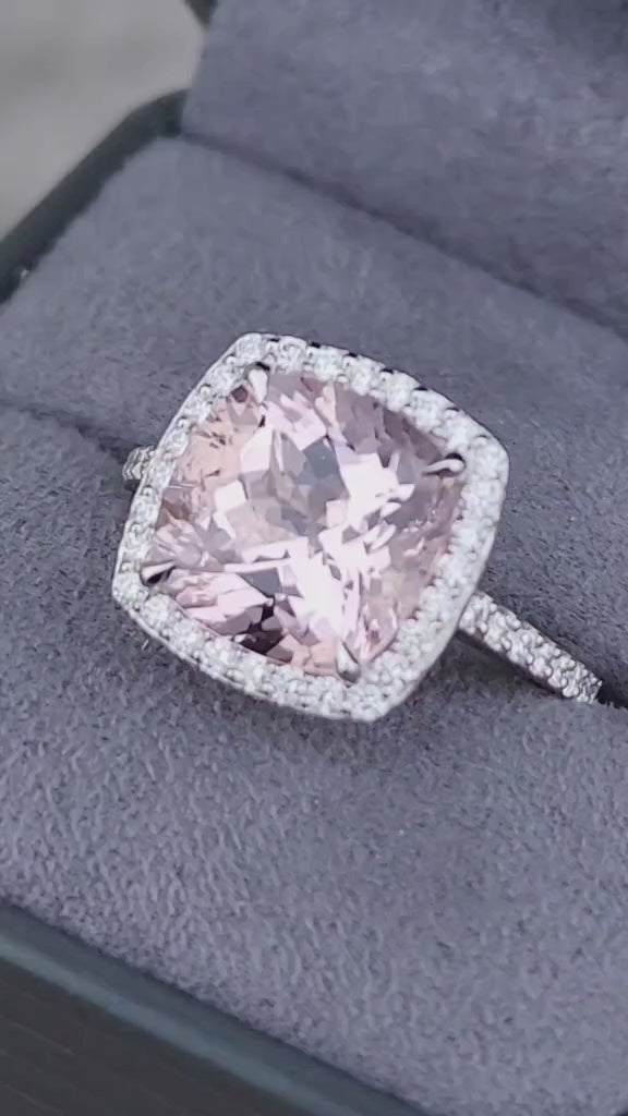 - Includes center 5 carat cushion cut Morganite. Wedding band sold separately