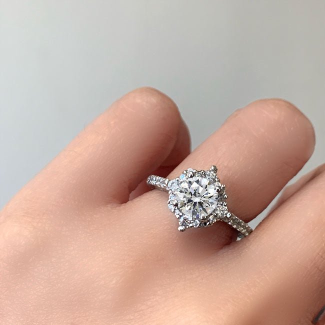 - Ring can be made to accommodate any size center diamond. Shown with a 2.00 carat round shaped diamond (approx 8.2 mm)