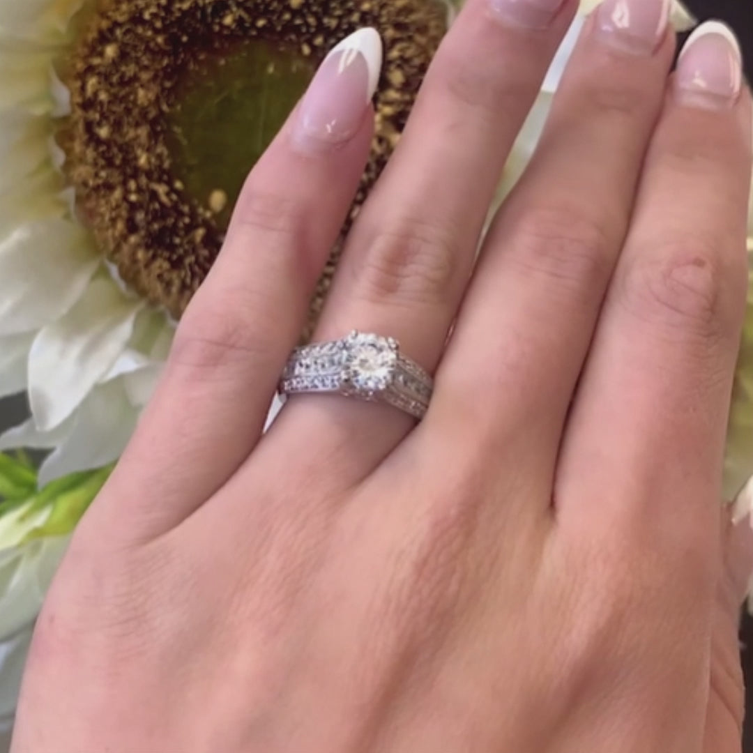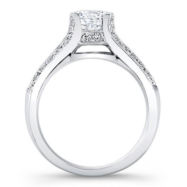 - Ring can be made to accommodate any size center diamond. Shown with a 1.00 carat round shaped diamond (approx 6.5mm)