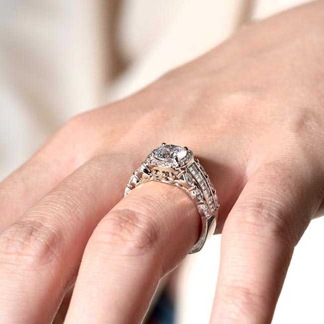 - Ring can be made to accommodate any size or shape center diamond. Shown with a 1.50 carat round cut diamond (approx 7.5mm)