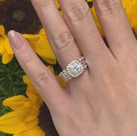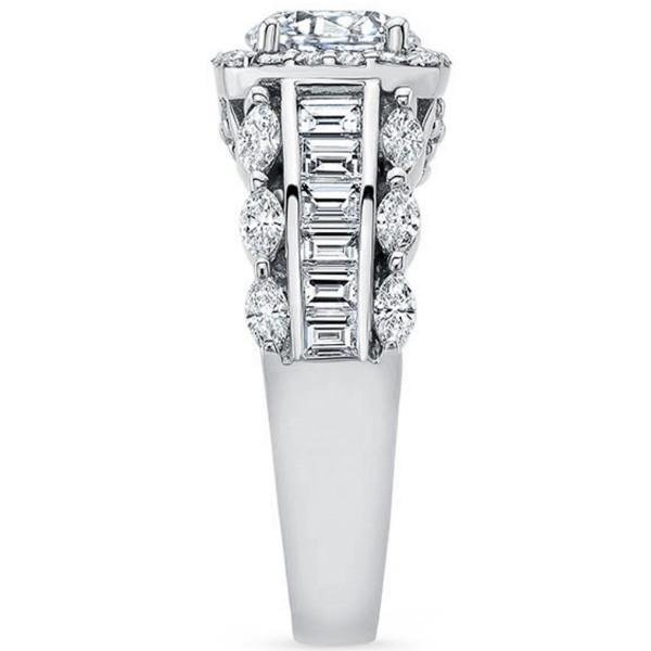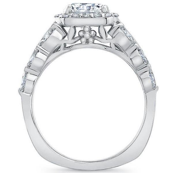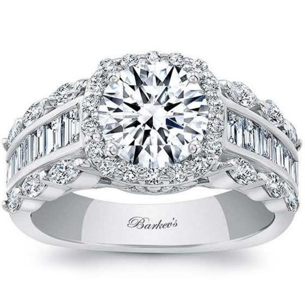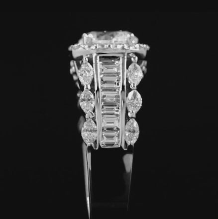 Barkev's Cushion Halo Diamond Engagement Ring Featuring Marquise, Baguette and Round Cut Diamonds