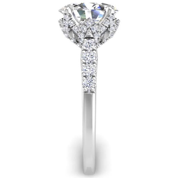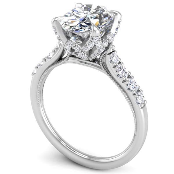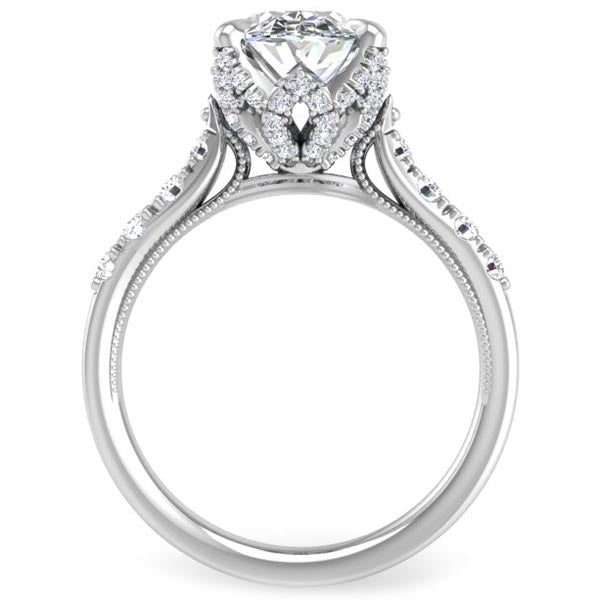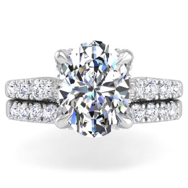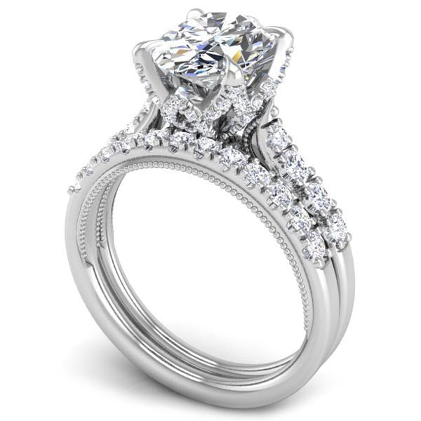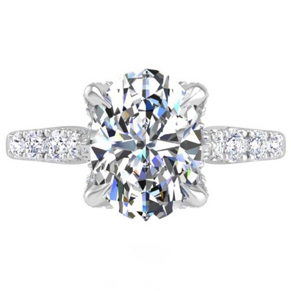 - Ring can be made to accommodate any size or shape diamond, Moissanite or gemstone. Shown with a 2.00 carat oval cut center stone (approx 9x7mm)