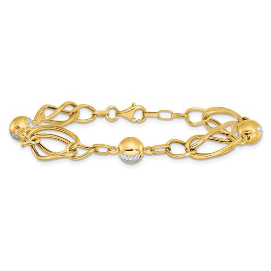 Embrace timeless elegance with our diamond cut bead and elongated link bracelet. Crafted with precision and showcasing expertly polished beads and elongated links, this bracelet exudes sophistication and luxury. Elevate your style with this stunning piece that embodies the ultimate in beauty and refinement.