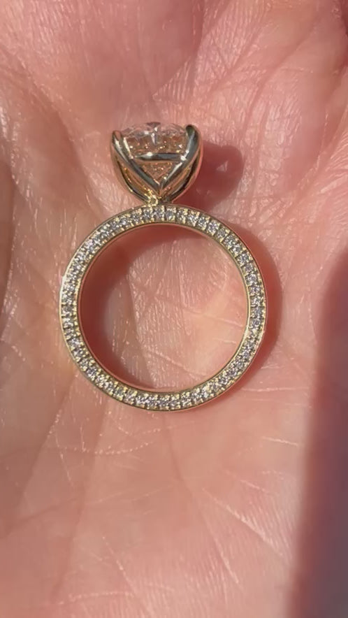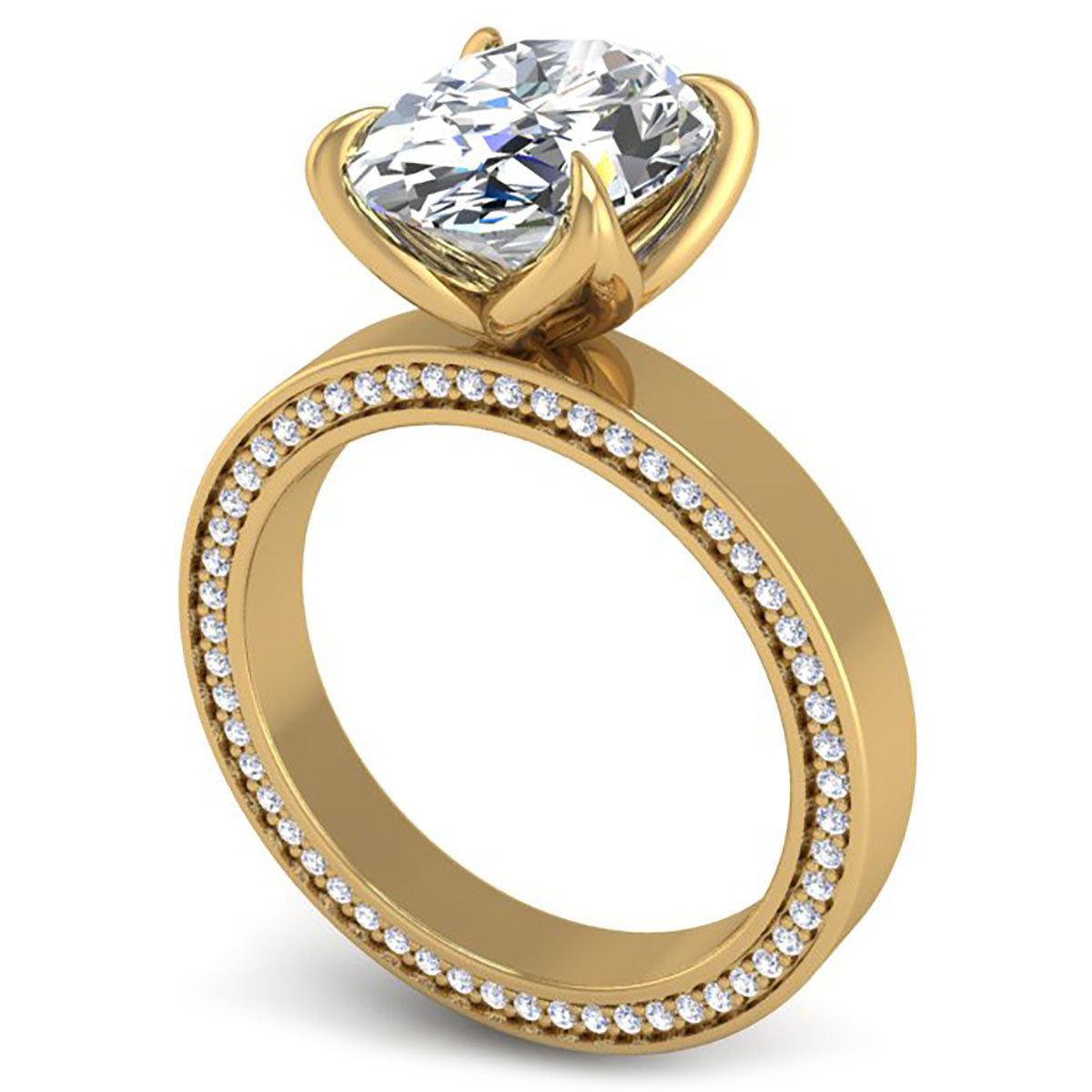 - Ring can be made to accommodate any size or shape diamond, Moissanite or gemstone. Shown with a 3.00 carat oval cut center stone (Approx 10.7 X 7.60MM)