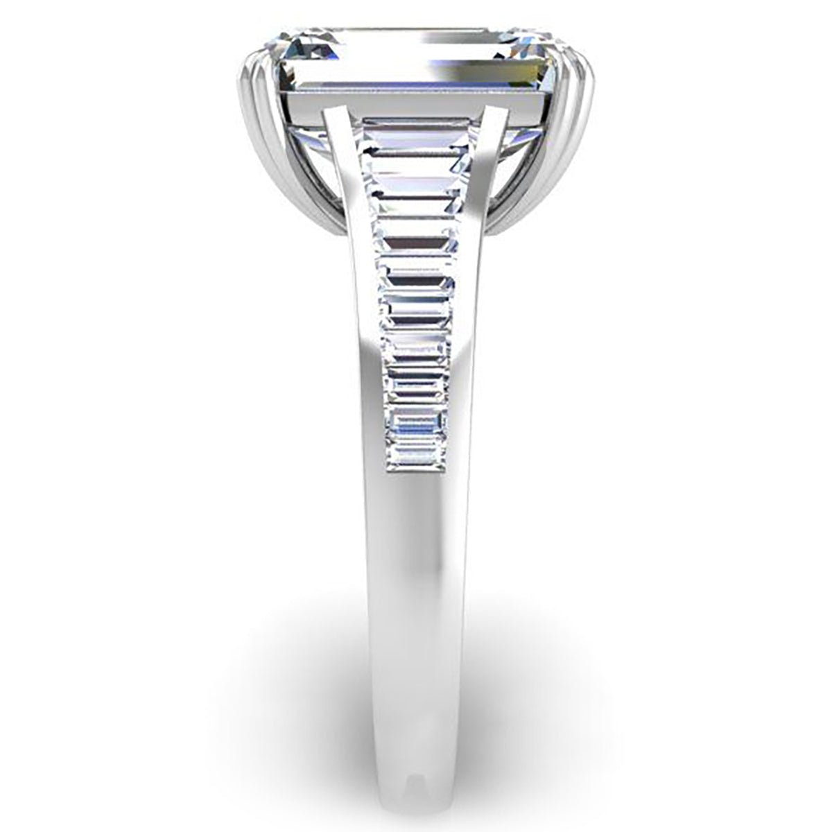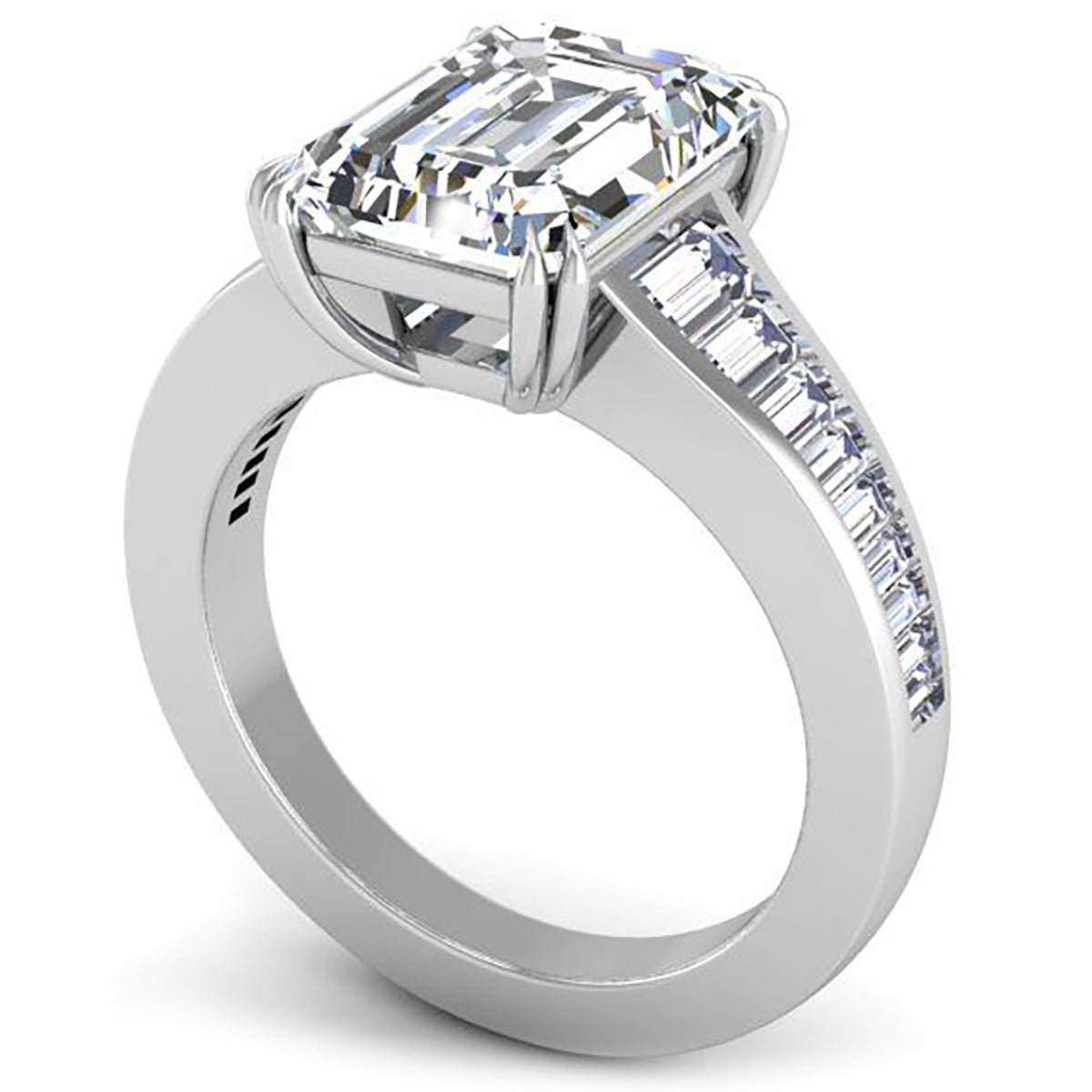 Embark on a journey of refined beauty with our Ben Garelick Venus tapered channel set emerald cut lab-grown diamond engagement ring, a testament to classic contemporary allure and timeless sophistication. The focal point of this exquisite ring is a 4 carat emerald cut diamond (sold separately) with 0.52 carats tapered emerald cut lab-grown side diamonds, elegantly channel-set to perfection. The precision of the cut showcases the diamond's brilliance, capturing the essence of modernity with a touch of classical grace.