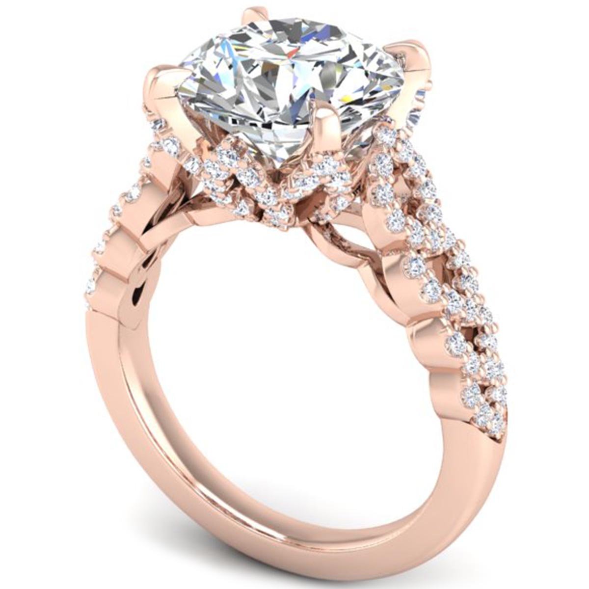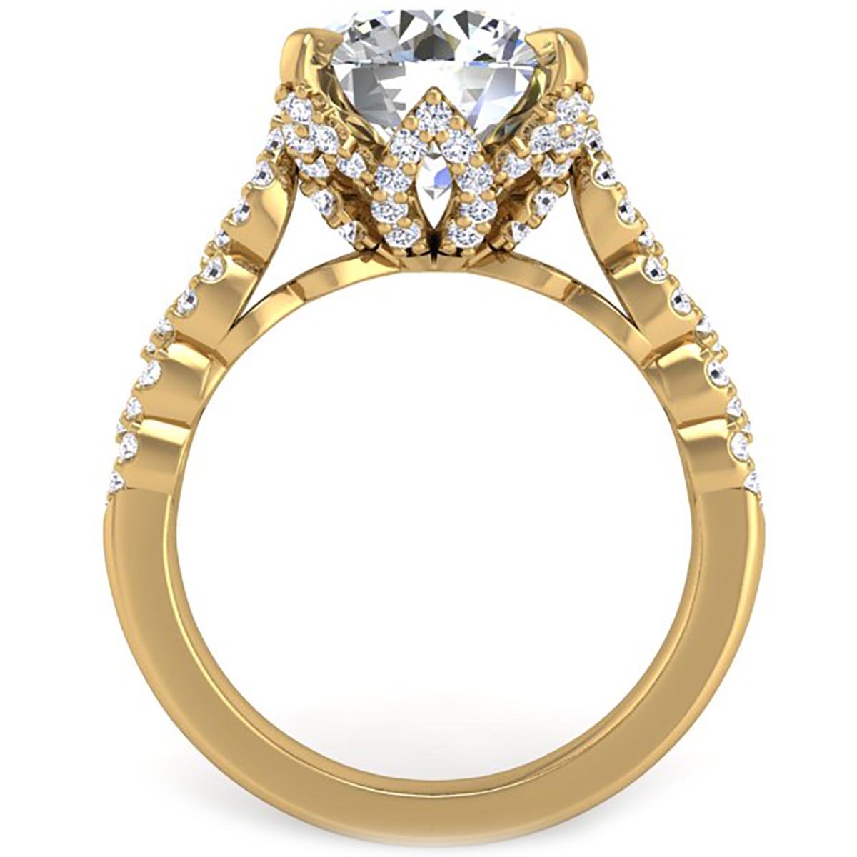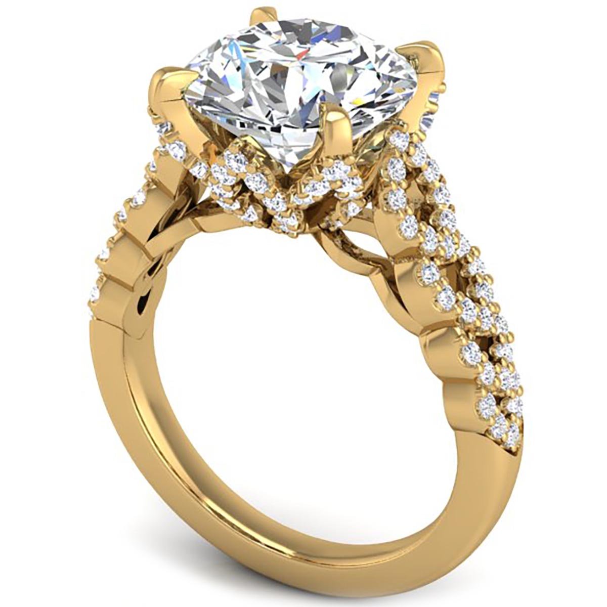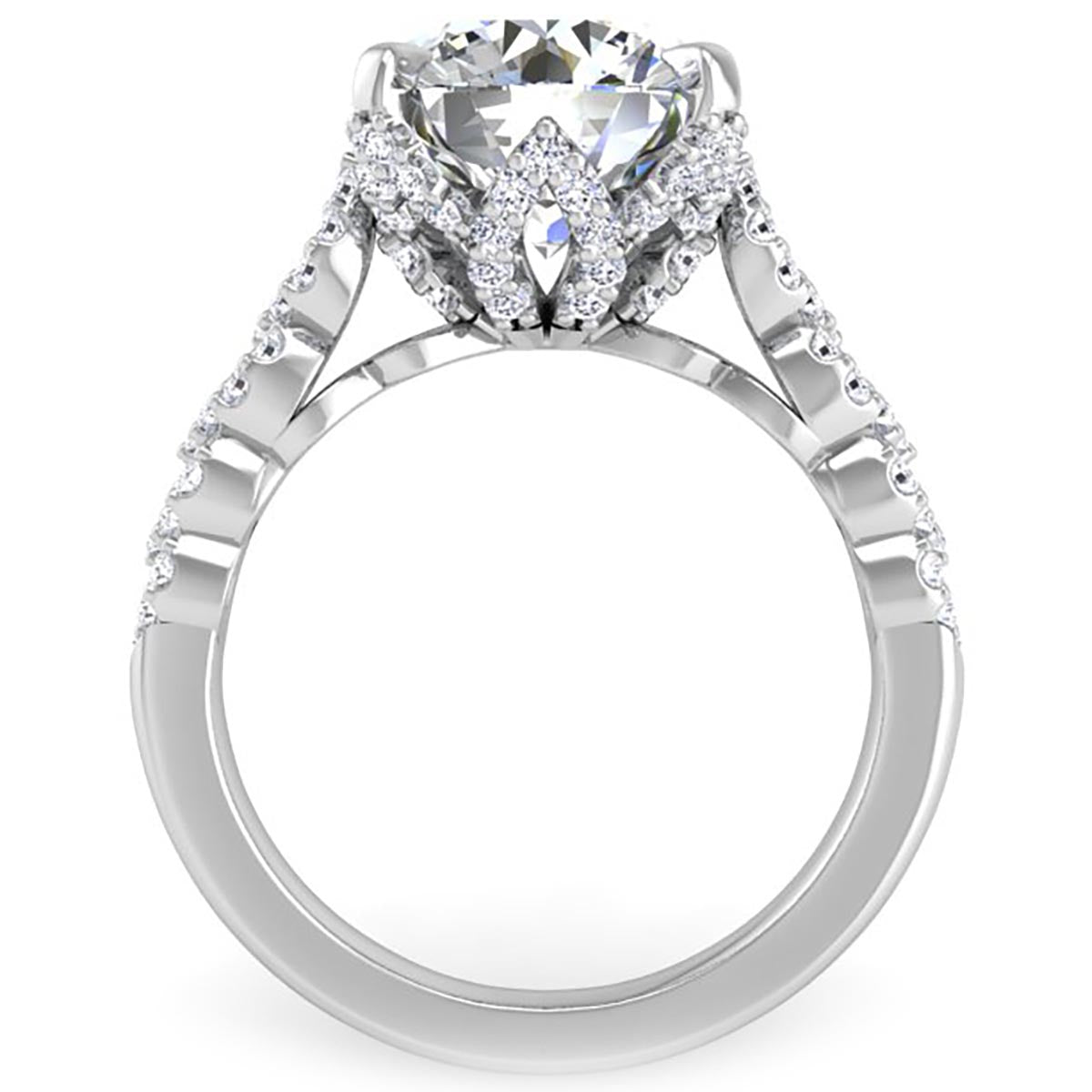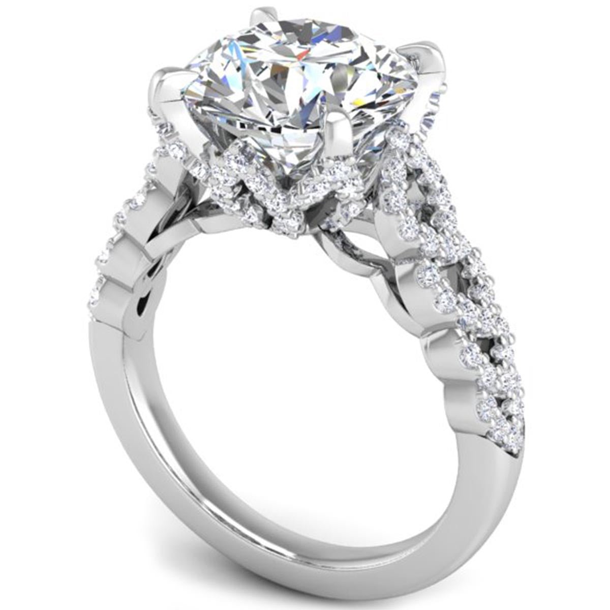 - Ring can be made to accommodate any size or shape diamond, Moissanite or gemstone. Shown with a 4.00 carat round cut center stone (10MM-sold separately).