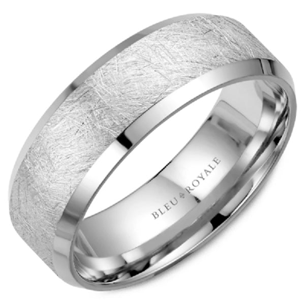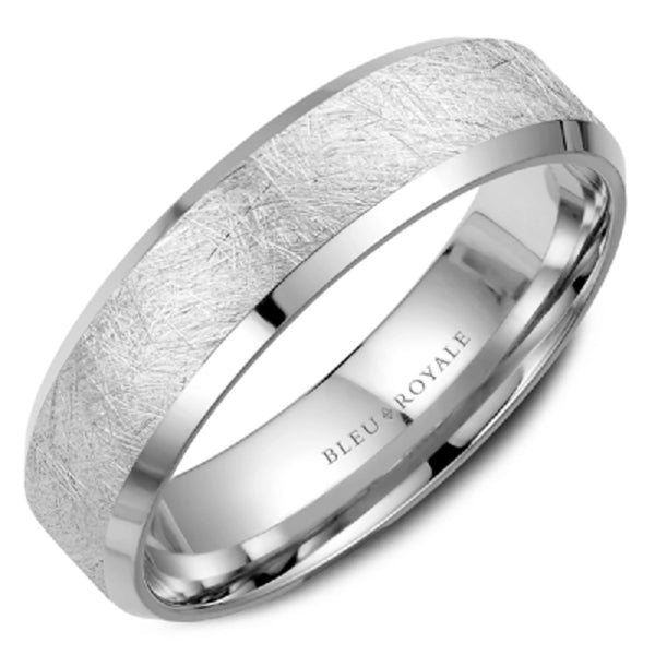 Bleu Royale Diamond Brush Center Wedding Band with High Polished Beveled Edges