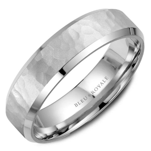 Bleu Royale Frosted Hammer Center Wedding Band with High Polished Beveled Edges