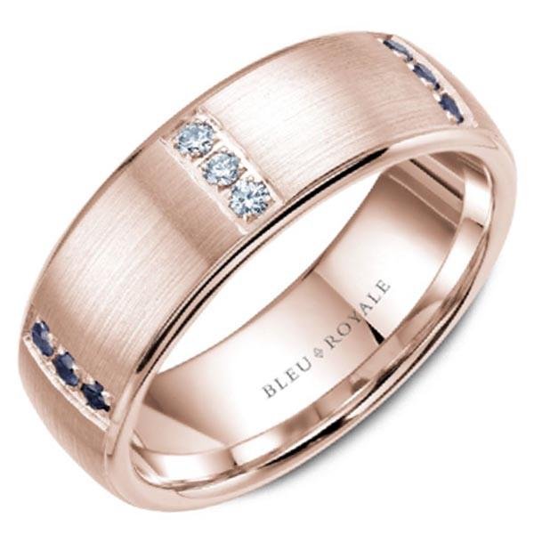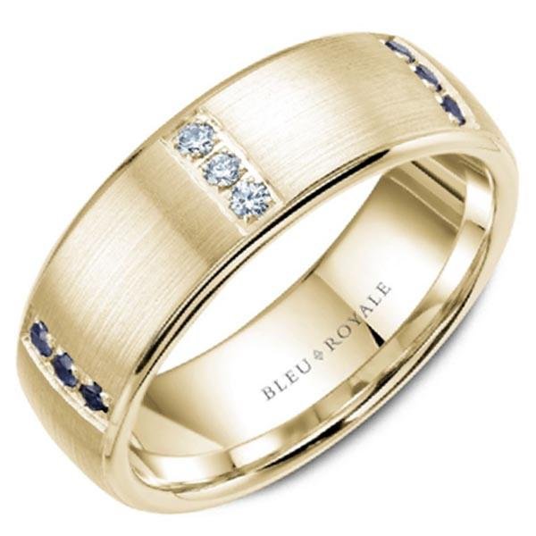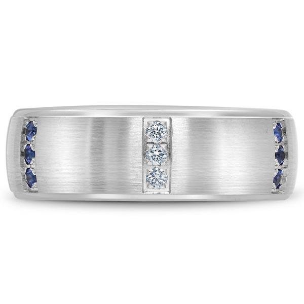 A perfect balance of color, brilliance, and craftsmanship, the Bleu Royale 7.5MM brushed finish blue sapphire & diamond station eternity wedding band brings modern refinement to a timeless design. The band features nine round-cut natural blue sapphires, totaling 0.25 carats, and nine round-cut diamonds, weighing 0.20 carats total, each prong-set in alternating stations around the band for a harmonious rhythm of sparkle and hue.