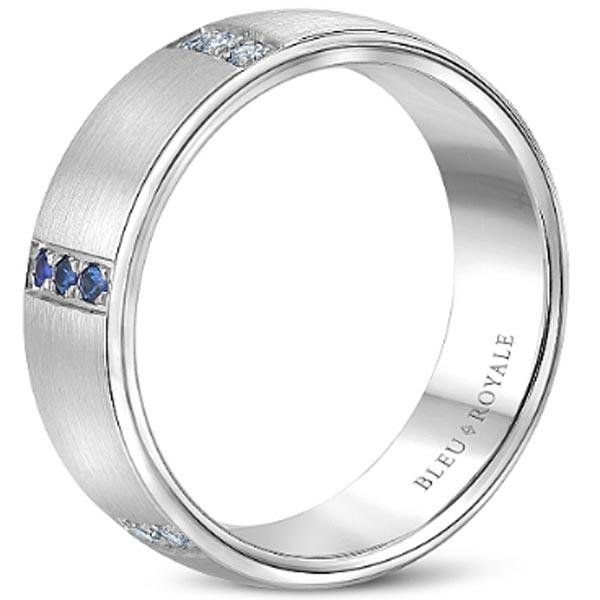 Bleu Royale Three Stone Station Blue Sapphire & Diamond Wedding Band