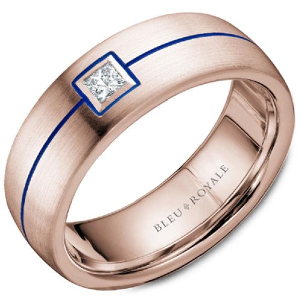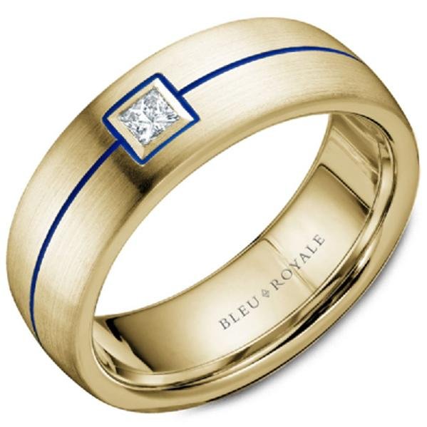 Bleu Royale Wedding Band with Princess Cut Diamond and Blue Enamel Stripe