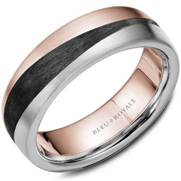 Bleu Royale Two-Tone Gold Black Carbon Swish Wedding Band