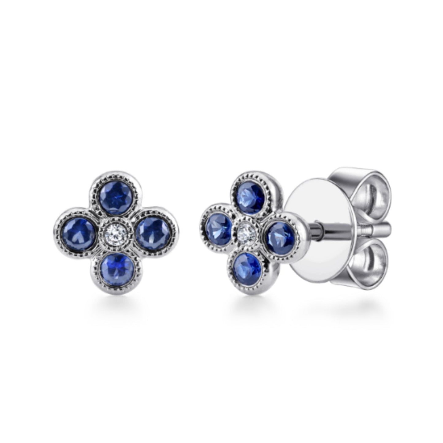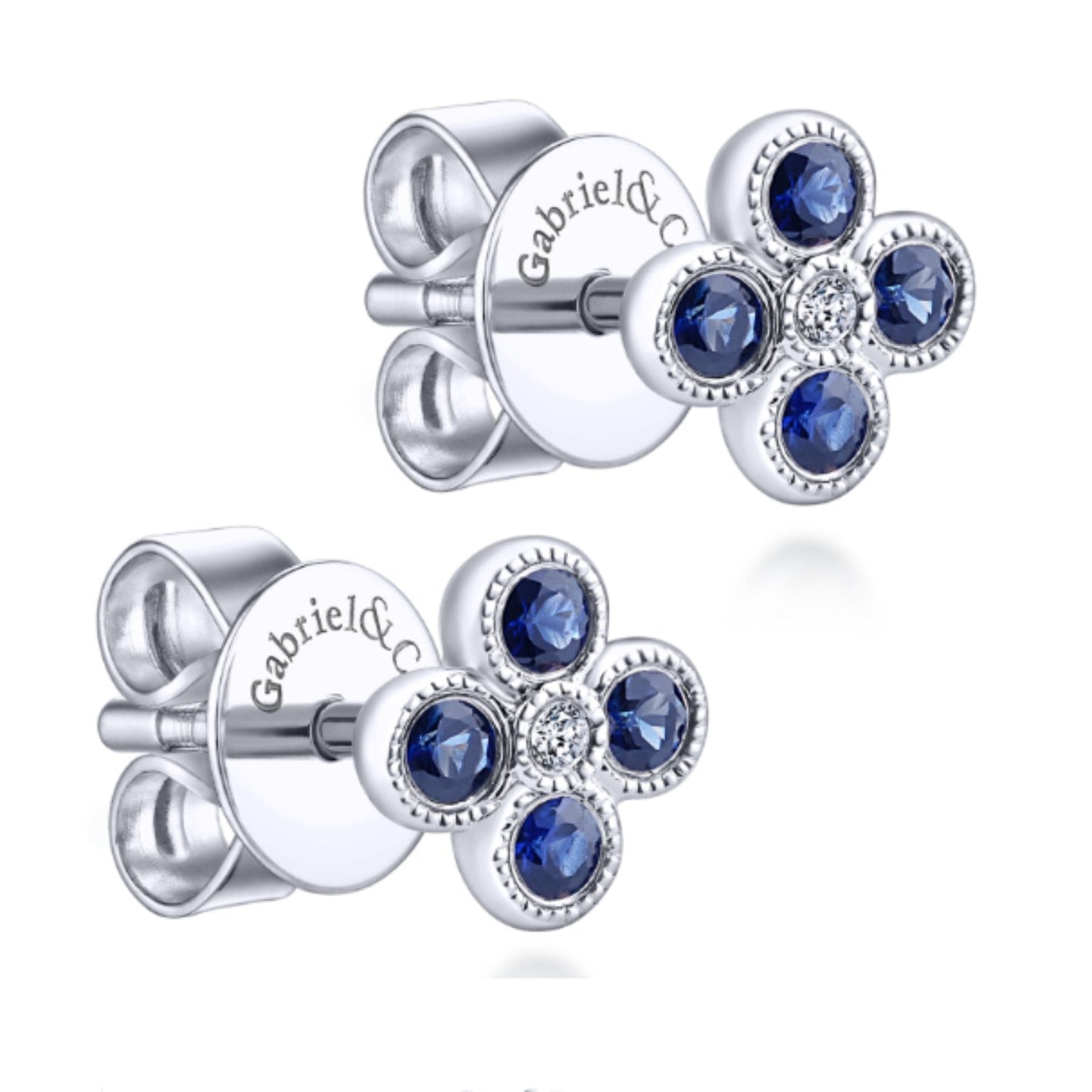 Gabriel & Co. Blue Sapphire Flower Cluster Diamond Stud Earrings