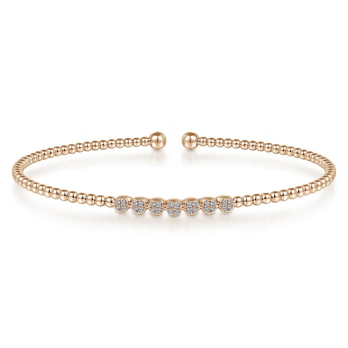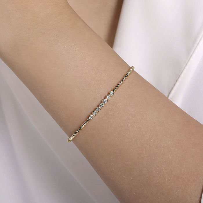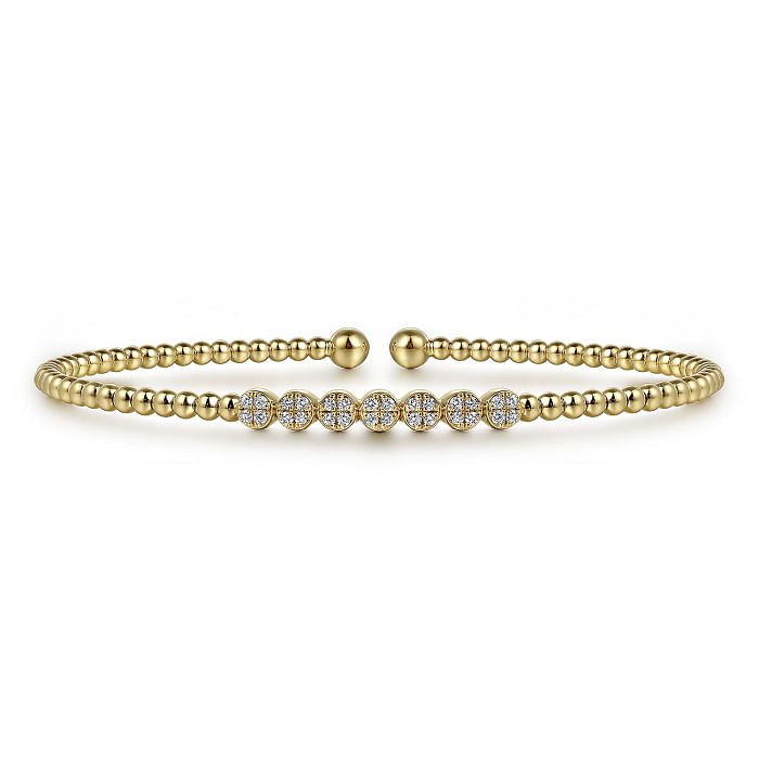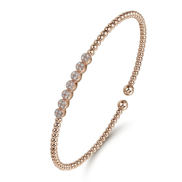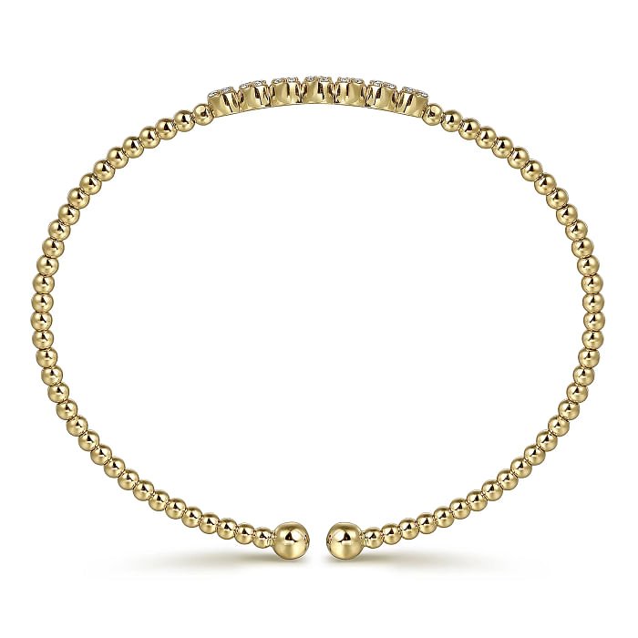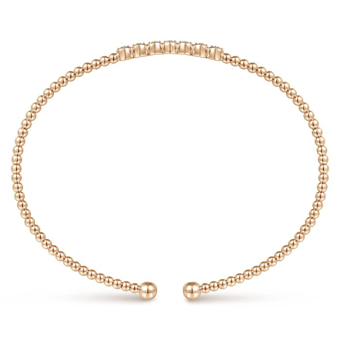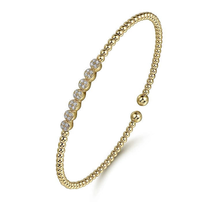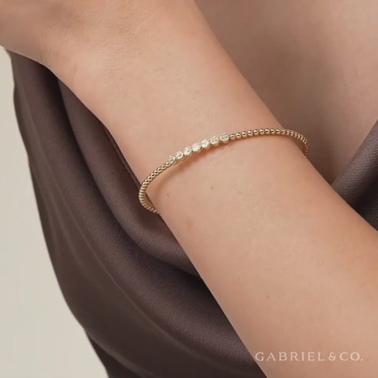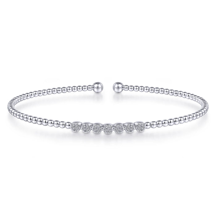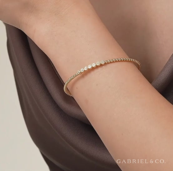 Seven sparkling pave diamonds, totaling 0.13 carats, encircle the top of this versatile beaded bracelet. Perfect for any occasion, it exudes elegance, sophistication, and grace. A lovely addition to Gabriel's Bujukan collection, this bangle can be easily paired with other styles from the collection.